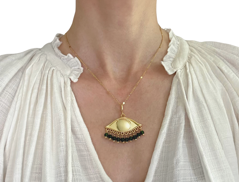 Inspired by our founder's love of antiquity and inspirational travels, the 18K Gold plated pendant will make you feel protected and empowered, elevating any look.